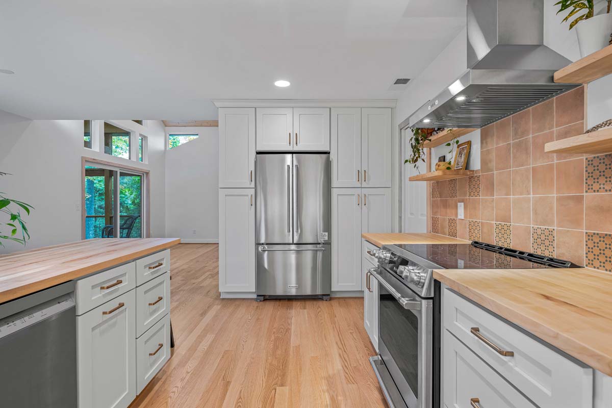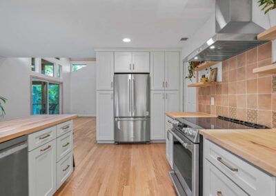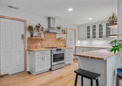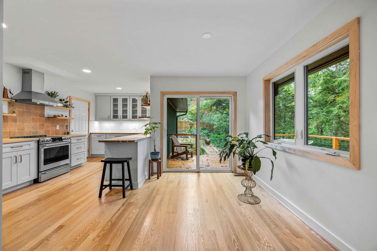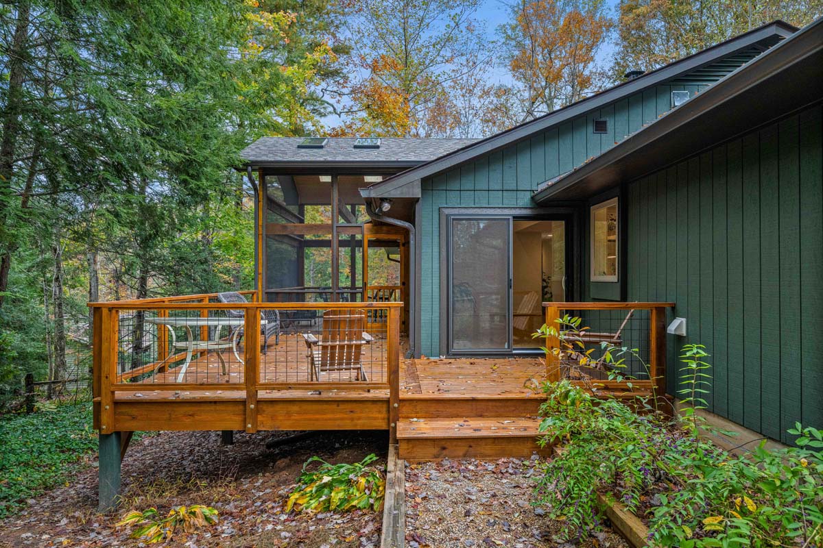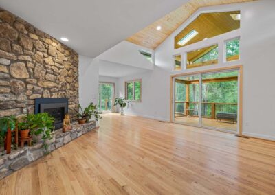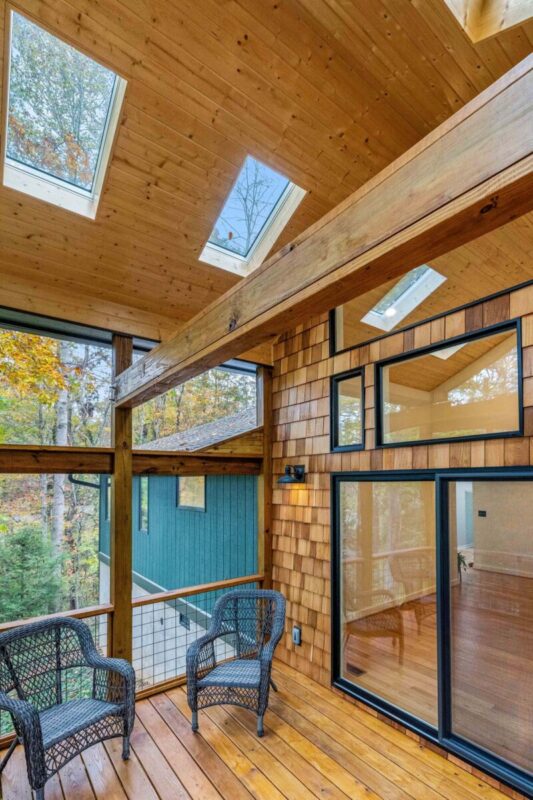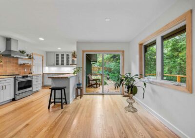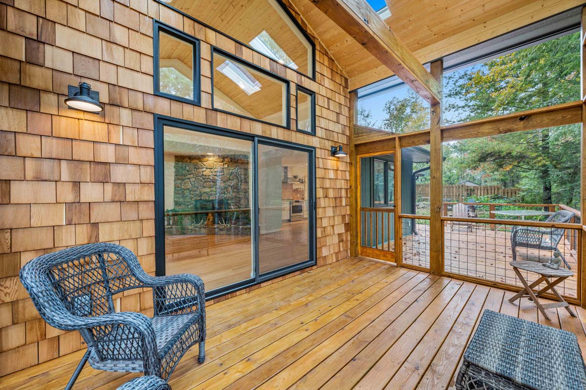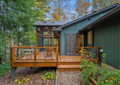 The former sunroom was reimagined as a vaulted dormer with a screened-in porch, opening the home to expansive views of the surrounding woods and flooding the interior with natural light. Alongside the architectural improvements, we brought the home’s energy performance up to our standards, reducing long-term energy use while extending the durability and lifespan of the property.
