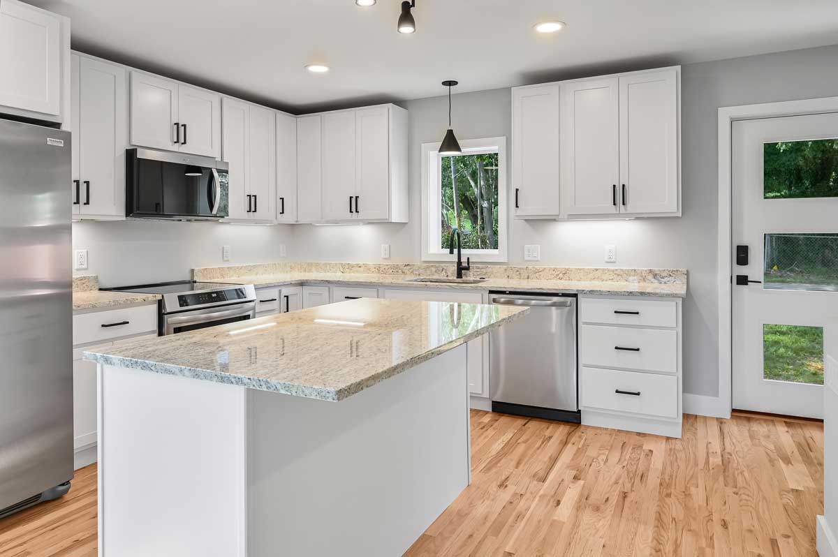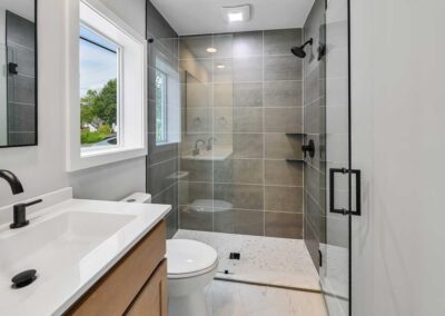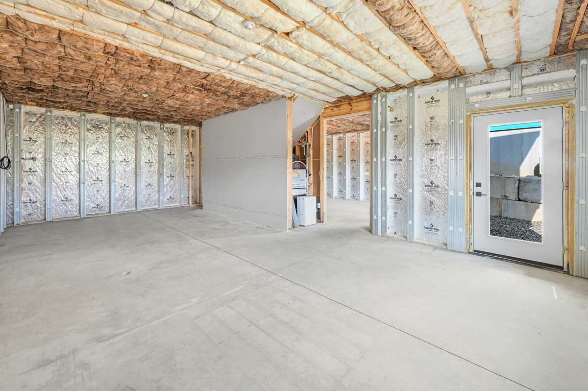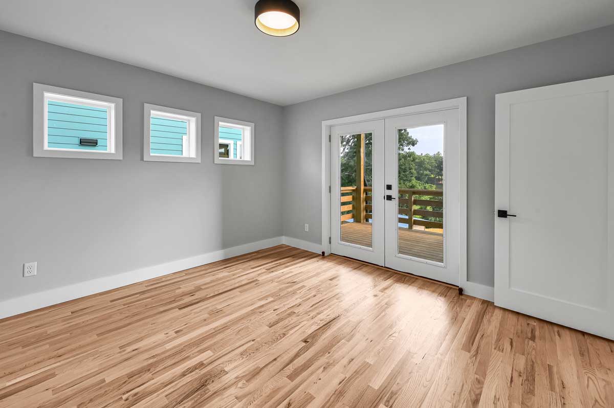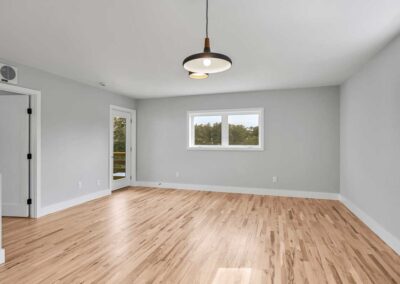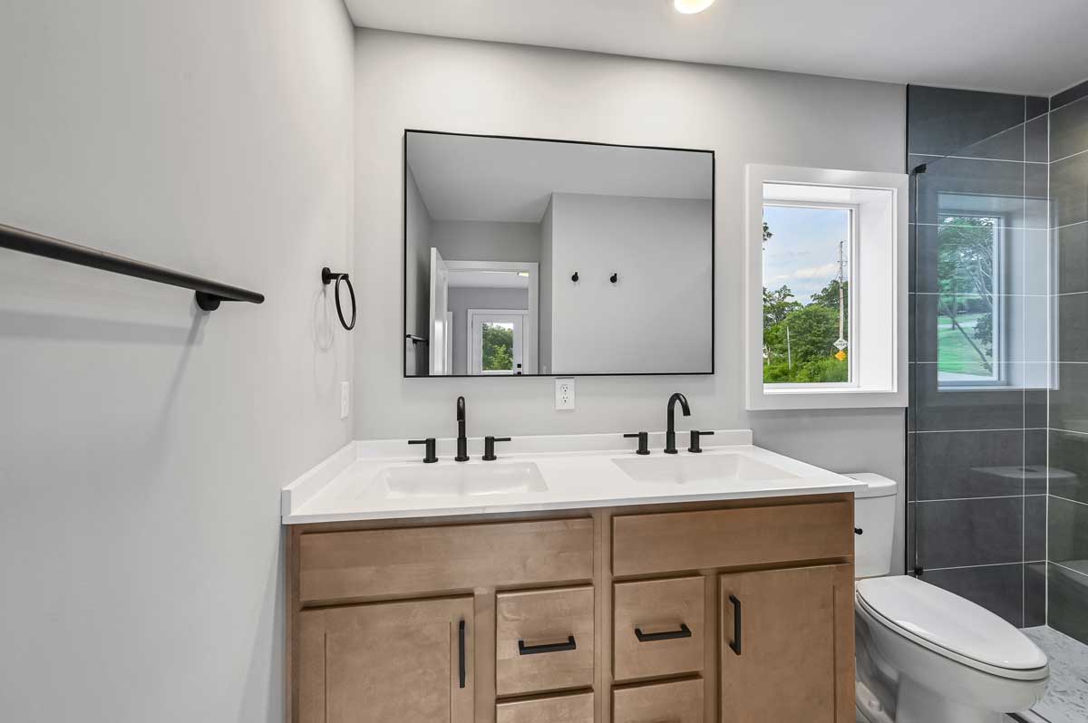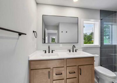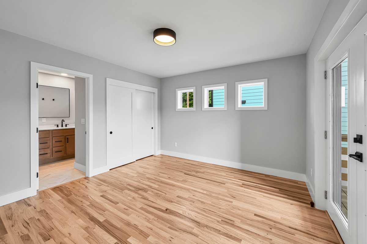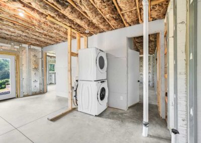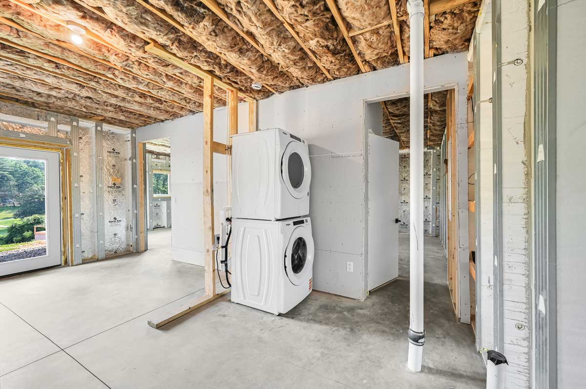 The compact yet efficient design includes a main-level bedroom with an ensuite full bathroom and double vanity, creating a private and functional retreat. An unfinished basement provides flexibility for expansion, offering the potential to add living space or tailor the home to future needs.